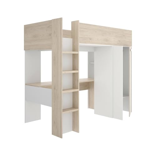 SCHLAFZIMMERZUSAMMENSETZUNG ? Komplettes Schlafzimmer, Kinderzimmer, Bridge-Möbelset, 206 x 111 H178 cm, Weiß außerdem Eiche