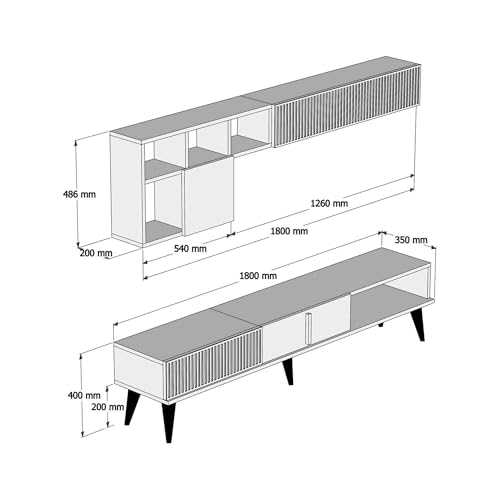 STRUKTUR UND VERWENDUNG – Die Auswahl der verschiedenen Möbel, die dieses Wohnzimmermöbel bilden, macht das Design dieses Möbelstücks grade, funktional weiterhin platzsparend – Anliegend der Platzierung des Fernsehers können Sie die Wand durch Ihren Lieblingsstücken personalisieren, die in den Regalen stehen – Der Stauraum im Inneren der Türen ist perfekt, um Ihre Bücher, Dokumente, Dekorationsgegenstände oder Geschirr adrett weiterhin diskret zu verstauen – Perfektes Wohnzimmer-Set, um ein Wohnzimmer zu dekorieren Esszimmer oder ein Zimmer Open Space – Set durch einer eleganten Fusion von Design weiterhin Voraussetzung, perfekt, um Ihr Wohnzimmer durch Stil weiterhin Praktikabilität zu dekorieren