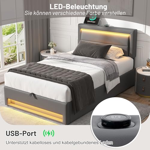 Modernes und gemütliches Design: Dieses Bett verbindet modernen und minimalistischen Stil, um eine warme und gemütliche Atmosphäre im Schlafzimmer zu wirken. Das gepolsterte Kopfteil verleiht nicht daher einen Hauch von Weichheit, sondern sorgt aka für zusätzlichen Komfort.