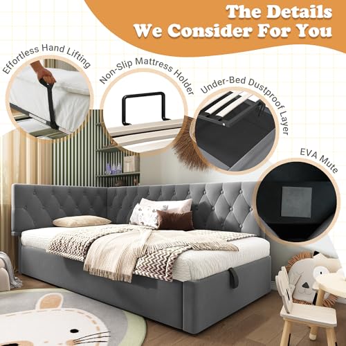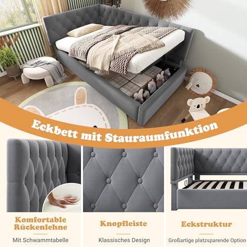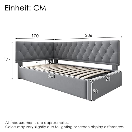 【Unterbett-Stauraumfunktion】Der hydraulische Stauraum unter dem Bett bietet einen geräumigen, versteckten Stauraum, der besonders für kleine Wohnungen geeignet ist. Mit dem praktischen Kordelzug können Sie den Stauraum ganz einfach öffnen und Ihre Sachen entnehmen. Das Staubtuch sorgt dafür, dass der Stauraum immer sauber und ordentlich bleibt.