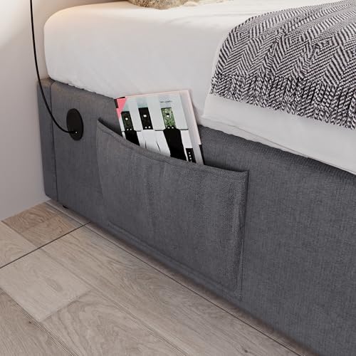 Funktionsbett: Eine Seitentasche am Bett eignet sich perfekt zur Aufbewahrung von Kopfhörern, Ladekabeln und anderen kleinen Gegenständen, sodass Sie den Komfort moderner Technologie vulgo im Bett genießen können.
