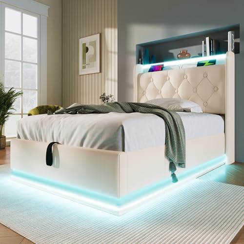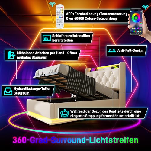 Mehrere Stauräume: Auf dem Nachttischregal sind die wichtigsten Dinge des täglichen Bedarfs immer griffbereit und leicht zugänglich. Das hydraulische Bett verfügt über ein einzigartiges, hochwertiges hydraulisches Stauraumkonzept, das ausreichend Stauraum unter dem Bett bietet und mithilfe eines Kordelzugs einfach angehoben oder geschlossen werden kann. Es eignet sich perfekt für die Aufbewahrung sperriger und selten genutzter Gegenstände.