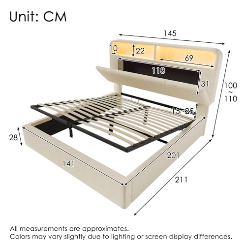- Besonderheiten: Höhenverstellbares Stauraum-Kopfteil, RGB-LED, USB-C/ USB Ladestation, Hydraulik-Stauraum.