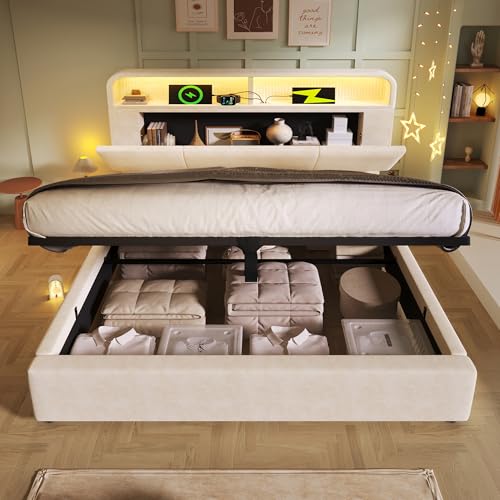 【Zweck mit Platzmangel: Höhenverstellbares Kopfteil mit Fach & hydraulischem Stauraum】: Dieses Bett mit Stauraum löst zwei Probleme schlagartig: Das höhenverstellbare Kopfteil bietet ein offenes Fach für Bücher, Handy oder die Fernbedienung. Darunter verbirgt sich ein riesiger, hydraulisch zugänglicher Stauraum – perfekt für Bettwäsche, Kleidung oder Koffer in kleinen Schlafzimmern. Zusätzlich beendet die integrierte 4-fach-Ladestation mit USB-C das Kabelchaos am Nachttisch.