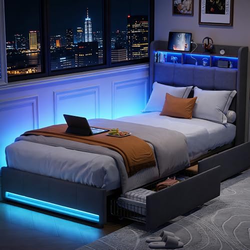 Pflügen Sie die perfekte Atmosphäre. Die RGB-LED-Beleuchtung im Kopfteil bietet vielfältige Farben und Modi, die Sie bequem per Fernbedienung steuern. Gleichzeitig laden Sie alle Geräte über die integrierte Station mit USB-C Schnellladung und mehreren USB-Ports – stabil, schnell und ohne Kabelsalat.