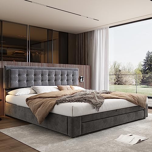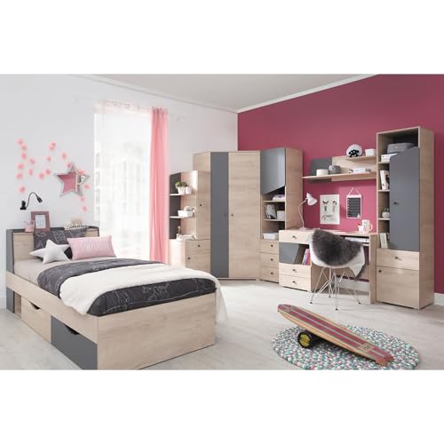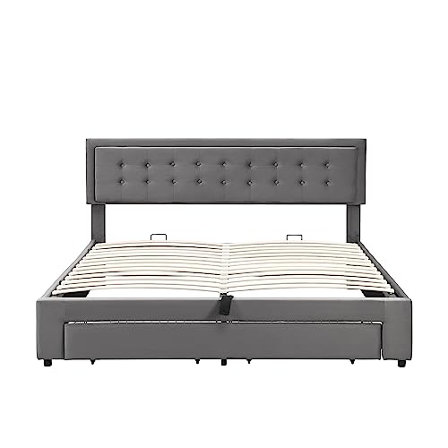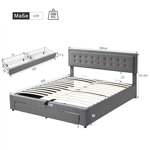 【Leistungsstarke Aufbewahrungsfunktion】Das Bett hat eine leistungsstarke Lagerungsfunktion, die in Kombination mit hydraulischen Stangen und Drahtgitterschubladen ist. Und es ist täglich leicht zu reinigen, bietet Stauraum für Ihre Gegenstände und hält Ihr Zimmer sauber und komfortabel.