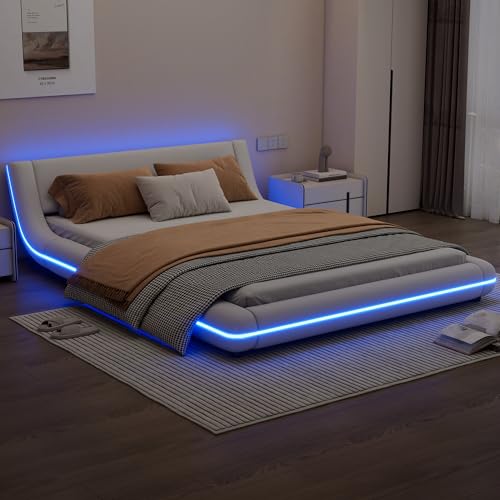 【Ambientes Beleuchtungsdesign】 Das Bett ist umgeben von farbwechselnden LED-Lichtern, die über eine App gesteuert werden, die die Lichtfarbe und Helligkeit nach Belieben an Ihre Bedürfnisse drauf setzen kann und eine warme und romantische Atmosphäre schafft. Ob Sie jetzt lesen, einen Film ansehen oder sich ausruhen, Sie können eine angenehme Lichtumgebung genießen.