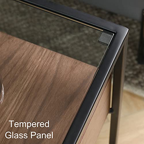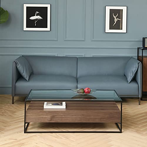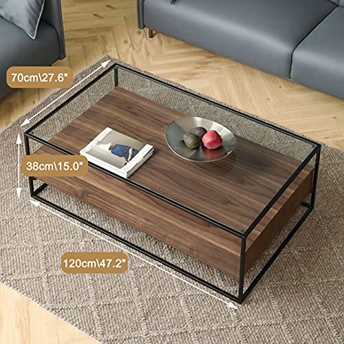 Doppellagiger Couchtisch Esstisch Wohnzimmer Büro Mitteltisch mit Schubladen Licht Luxus Glastisch Tischplatte Beistelltisch Möbel