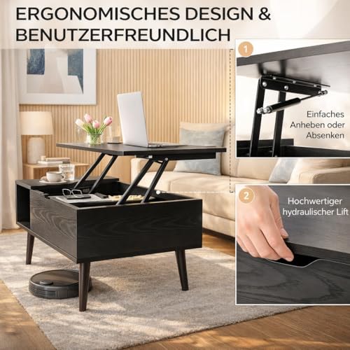 ☕【Geräumiger Stauraum】Das große versteckte Fach unter dem couchtisch bietet ausreichend Platz für Bücher, Tassen, Spiele, Snacks usw., um sie vor Sturz zu schützen. Der Aufzugmechanismus nimmt nicht abundant Platz im Inneren des Stauraums ein. Die beiden Regale an der Seite bieten zusätzlichen Platz und sparen abundant Zeit, indem Sie häufig verwendete Gegenstände an einem auffälligen Ort aufbewahren können.