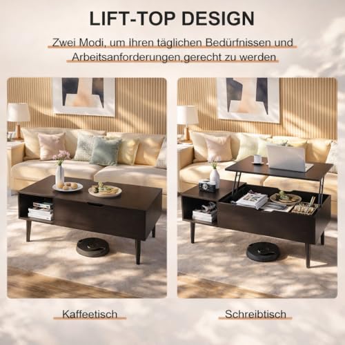 ☕【Schlichter Stil】Das höhenverstellbarer couchtisch verfügt über eine schlichte Oberfläche und eine subtile Textur, die perfekt zu Ihrem Wohnzimmer/Empfangsbereich/Bürostil und Dekor passt. Dieses moderne couchtisch hebt Ihre einzigartige Ästhetik und Ihren Geschmack perfekt hervor und wird zu einem Abschnitt Ihrer Raumgestaltung mit individuellem Geschmack.