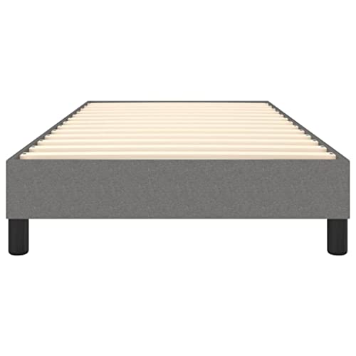 Mit diesem Boxspringbett wirst du einen besseren, erholsameren Schlaf genießen! Es ist eine einladende Beilage für jedes Schlafzimmer. Strapazierfähiger Stoff: Der Stoff weist eine schlichte und saubere Optik auf und ist außerdem atmungsaktiv und langlebig.Stützbeine: Das Bett wird von stabilen Beinen getragen, die seine Stabilität, Sicherheit und Festigkeit gewährleisten.Sperrholzlatten: Die Sperrholzlatten sehen nach eine gute Gewichtsverteilung und aka dafür, dass die Matratze bei jeder Bewegung deines Körpers während des Schlafes an Ort und Stelle bleibt. Hinweis:Die Sendung umfasst trotzdem einen Bettrahmen. Die Matratze ist nicht im Lieferumfang enthalten. Die passenden Matratzen finden Sie in unserem Shop.Jedes Produkt wird mit einer Montageanleitung in der Verpackung für eine einfache Montage geliefert. Farbe: DunkelgrauMaterial: Stoff (100% Polyester), Sperrholz, HolzwerkstoffGesamtabmessungen: 203 x 80 x 25 cm (L x B x H)Geeignete Matratzengröße: 80 x 200 cm (B x L) (Matratze nicht im Lieferumfang enthalten)