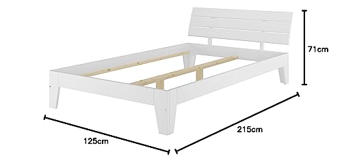 Stilvolles Einzelbett in waschweiß (Holzmaserung scheint durch)