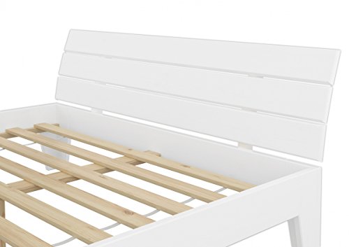Das Holzbett ist aus Massivholz Kiefer gefertigt