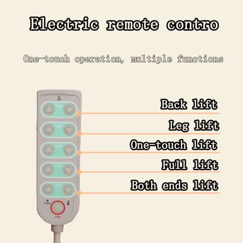 Höhenverstellung: Das Bett kann frei angehoben und gesenkt werden, um das Ein- und Abmelden zu schwächer machen. Herunterlassen Sie es nachts ab, um versehentliche Stürze zu vermindern, und heben Sie es tagsüber für die tägliche Pflege an. Dies passt auf verschiedene Höhen und lindert Rückenschmerzen im Zusammenhang mit Langzeitpflege.
