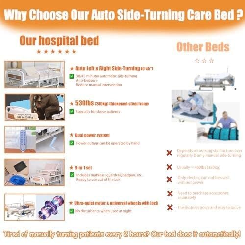 Dual-Power und automatische Anti-Dekubitus-Positiv: Dieses verstellbare Krankenhausbett verfügt über eine manuelle Übersteuerung für Stromausfälle und eine automatische 30/45-minütige Rotationsfunktion, um Druckstellen zu unterbinden. Gebaut mit einem stabilen 240 kg schweren Rahmen, wurde es entwickelt, um bariatrische Patienten zu befestigen, was es zu einer zuverlässigen Konvergenz für den Heimgebrauch macht.