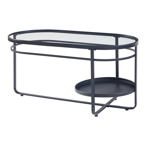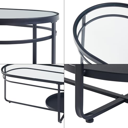 [en.casa] Couchtisch Kumla Wohnzimmertisch mit unterer Ablage Sofatisch oval Glasplatte Schwarz Kaffeetisch 90 x 42,5 x 46 cm Metallgestell