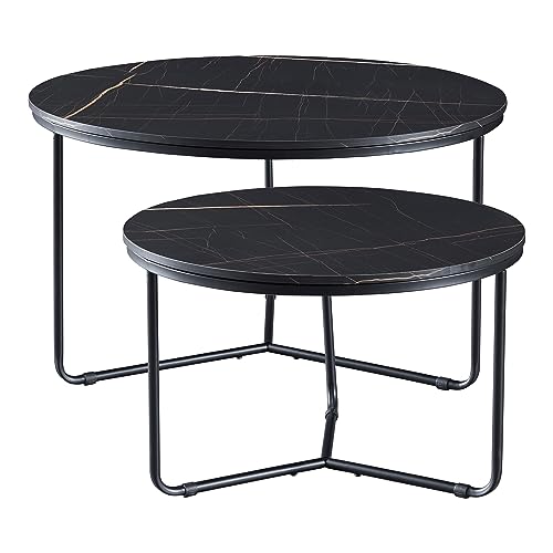 ![[en.casa] Satztisch Poxdorf aus 2 Couchtischen Wohnzimmertisch 2er Set rund Schwarze Marmoroptik Sofatisch Metallgestell – Bild 6](https://m.media-amazon.com/images/I/41I4OUVCXrL.jpg)