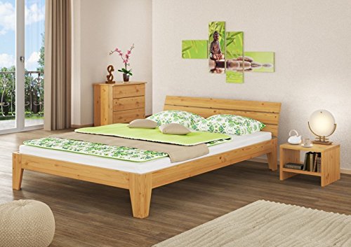 Erst-Holz Doppelbett Überlänge 160×220 Futonbett Massivholz Kieferbett Natur mit Rollrost 60.62-16-220