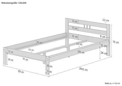 Erst-Holz® Massivholzbett weiß Kiefer Jugendbett 120×200 Einzelbett Futonbett mit Rollrost 60.64-12 W