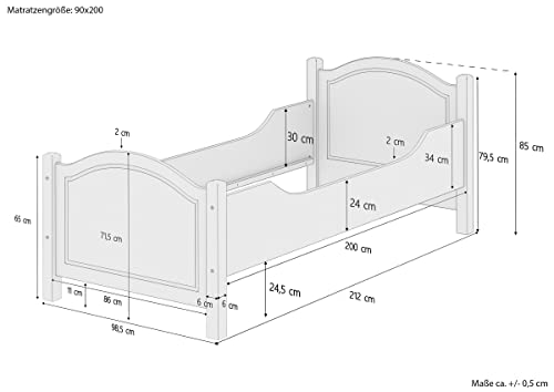 Gemütliches und stabiles Einzelbett im klassischem Landhausstil inkl. Lattenrollrost – Ideal an Stelle Senioren mit Bezug auf eine hohe Sitzkante