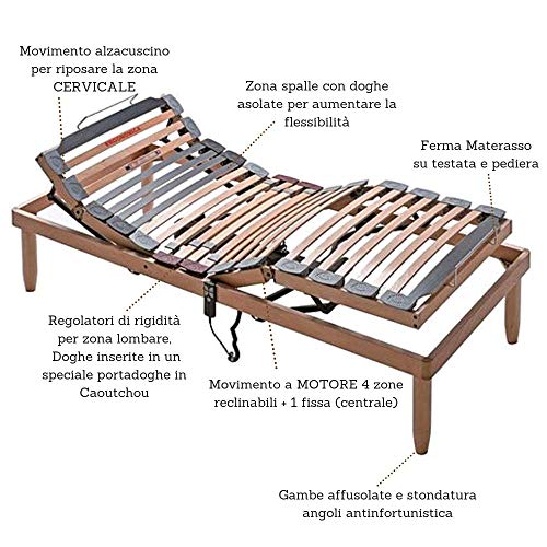 ✅ Doppelbett Lattenrost 135×190 cm, Holzlattenrost mit elektrischer Kopf und Fußteilverstellung. Bettgestell mit 28 Latten in Buche, Größe 38×8 mm mit hoher Widerstandsfähigkeit. Die Buchenholzdauben (sehr widerstandsfähiges Holz) dieses Lattenrostes werden unter Dampf gebogen, wodurch sie elastischer werden, während die mit Naturprodukten hergestellte Lackierung das Holz vor äußeren Einflüssen schützt. Gilt als grünes Produkt ohne schädliche Stoffe, recycelba