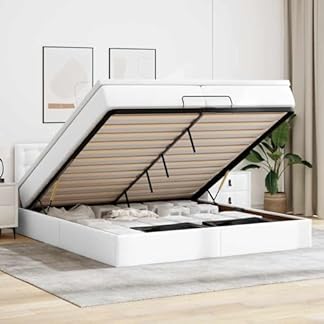 **Elegantes Design**: In schlichtem Weiß und mit einem modernen Design passt dieses Ottoman-Bett in jedes Schlafzimmer. Es kombiniert Funktionalität und Ästhetik, um deinem Zuhause einen besonderen Touch zu verleihen. Ideal zugunsten moderne und minimalistische Einrichtungsstile.