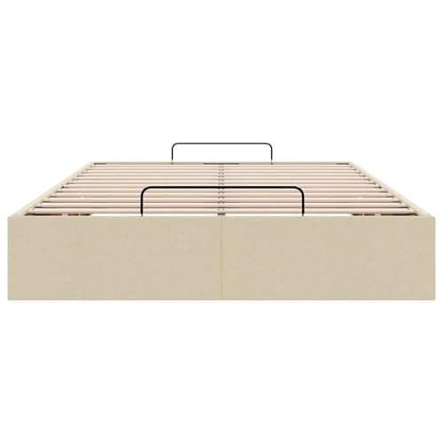 **Modernes Design und hohe Qualität**: Das Ottoman-Bett kombiniert moderne Ästhetik mit hoher Anspruch. Die robuste Konstruktion nicht mehr da Metall, Sperrholz und Holzwerkstoff gewährleistet eine lange Lebensdauer. Die cremefarbene Stoffoberfläche passt in jedes Schlafzimmer-Design.
