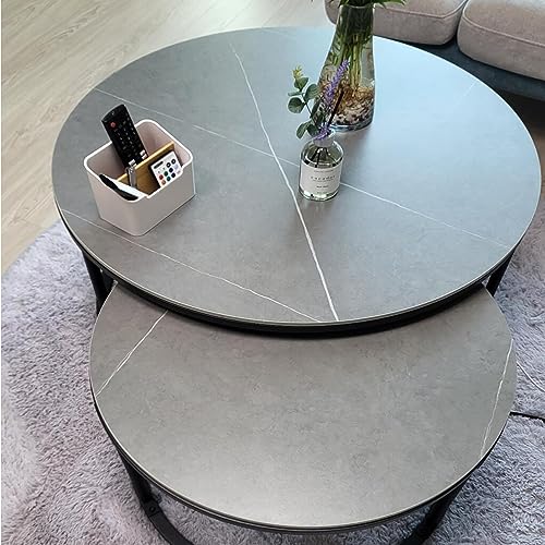 2er-Set – Wir bieten 2 tlg Couchtisch mit einem kleinen und einem großen runden Beistelltisch an, die je nach Bedarf nebeneinander gestellt oder gelagert werden können, Durch die offenen Gestelle lässt sich Beistelltisch platzsparend ineinanderschieben, alias allein stehen. Großer runder Tisch: 80cm Durchmesser, 45cm hoch. Abkömmling runder Tisch: 60cm Durchmesser, 40cm hoch, Belastbarkeit: 80kg. Die Tischbeine sind auf doppelte Eisenrahmen aufgerüstet, was den Couchtisch stabiler macht
