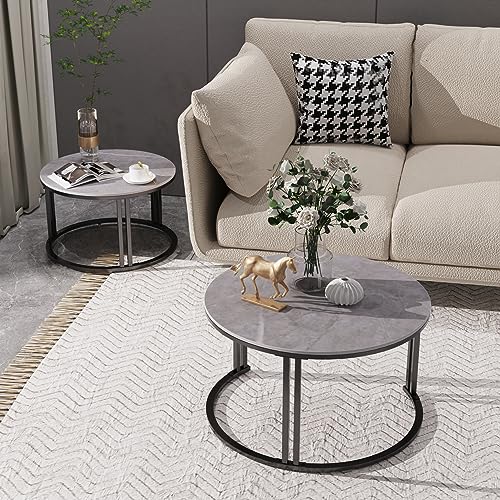 Klassische Gesinterter Stein Materialien – Dieser Beistelltische set verbinden klassische Gesinterter Stein Materialien mit einer avantgardistischen Formensprache, die Dicke des tischplatte ist 10,7mm, Gesinterter Stein ist kratzfest, wasserundurchlässig, einfach zu reinigen, biegebeständig, hitzebeständig, Besonders auffällig alldieweil, ist der halbrunde Beendung der Tischbeine jeder Metalleisenrahmen, durch den das Möbelstück seine Standfestigkeit erhält