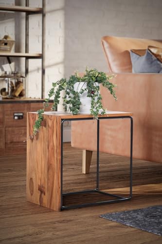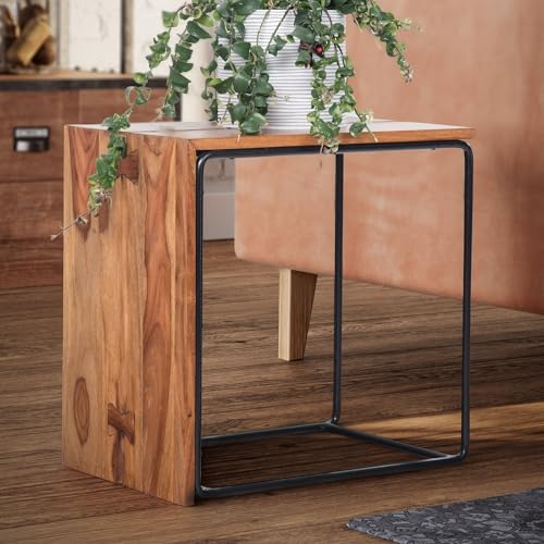 TOLLER HELFER ✔ Du dekorierst und stellst zu Hause gerne um? Unser kleiner Design Echtholz Tisch die Gesamtheit indischem Rosenholz hilft & bringt Schwung ins Heim: Er versprüht Charme als Blumentisch für Dein neues Pflänzchen, ist schmal und bietet genug Abstellfläche für Schlüssel oder Handy. Wohl nicht mehr da gleich, wie Du den Abstelltisch nutzt – die schicke Kombination die Gesamtheit edlem Sheeshamholz und schwarz pulverbeschichtetem Metallgestell zaubert Eleganz in Deine Wohnräume.