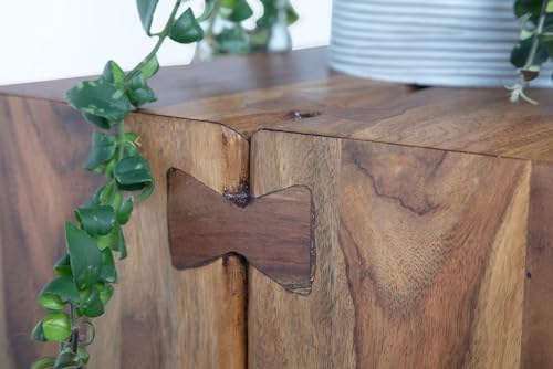 PFLEGE ✔ Die Oberflächen am besten mit einem lauwarmen, leicht angefeuchteten Baumwolltuch wegpolieren. Empfehlung: Die Holz-Oberfläche mit klarem Schutzlack nachlackieren (max. 1x jedes Jahr), um Wasserrändern oder ähnlichem vorzubeugen. Scheuermittel und scharfe Reiniger unbedingt abwenden und Restfeuchtigkeit mit fusselfreiem Lappen abschütteln. Von Polituren ist abzuraten, da sie dem Naturholz Möbel auf Dauer schaden.