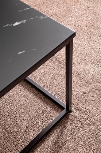 MATERIAL ✔ Tischplatte: foliertes MDF in schwarzer Marmor Optik mit schützender Polyresin-Beschichtung // Gestell: lackierter Stahl.