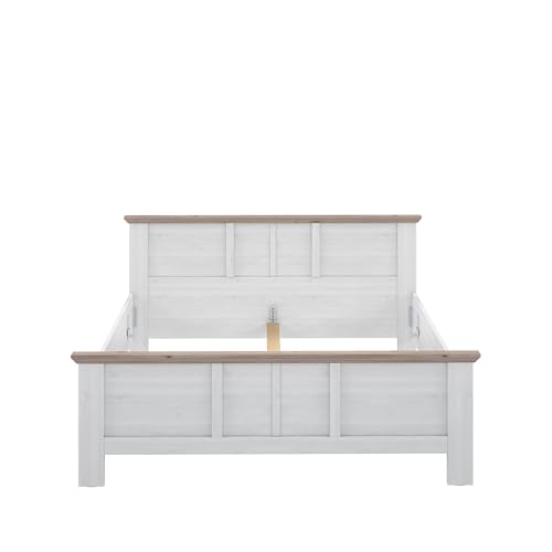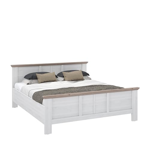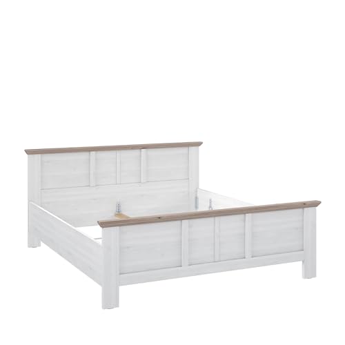 Forte ILOPPA Bett 190 200, Weißes Bett im Landhausstil, Bettgestell, Liegefläche: 180 cm x 200 cm, Holzwerkstoff, Nelson Eiche/Schneeeiche Holzdekor, 193 cm breit x 95,2 cm hoch x 210,4 cm tief