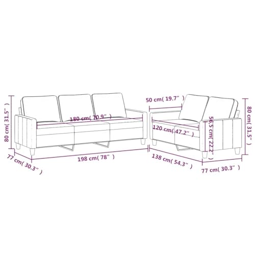 - Gesamtabmessungen: 198 x 77 x 80 cm (B x T x H)