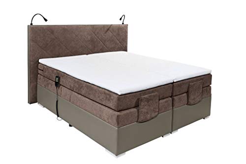 Froschkönig24 Trenton elektrisches Motor Boxspringbett 180x200cm Ehebett Bett Braun, Ausführung:Variante 2