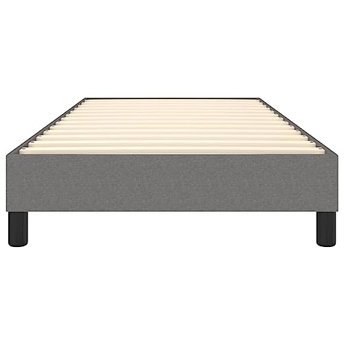 Mit diesem Boxspringbett wirst du einen besseren, erholsameren Schlaf genießen! Es ist eine einladende Appendix für jedes Schlafzimmer. Strapazierfähiger Stoff: Der Stoff weist eine schlichte und saubere Optik auf und ist außerdem atmungsaktiv und langlebig.Stützbeine: Das Bett wird von stabilen Beinen getragen, die seine Stabilität, Sicherheit und Festigkeit gewährleisten.Sperrholzlatten: Die Sperrholzlatten Acht geben eine gute Gewichtsverteilung und bekannt als dafür, dass die Matratze bei jeder Bewegung deines Körpers während des Schlafes an Ort und Stelle bleibt. Hinweis:Die Zustellung umfasst Gewiss einen Bettrahmen. Die Matratze ist nicht im Lieferumfang enthalten. Die passenden Matratzen finden Sie in unserem Shop.Jedes Produkt wird mit einer Montageanleitung in der Verpackung für eine einfache Montage geliefert. Farbe: DunkelgrauMaterial: Stoff (100% Polyester), Sperrholz, HolzwerkstoffGesamtabmessungen: 203 x 90 x 25 cm (L x B x H)Geeignete Matratzengröße: 90 x 200 cm (B x L) (Matratze ist nicht im Lieferumfang enthalten)