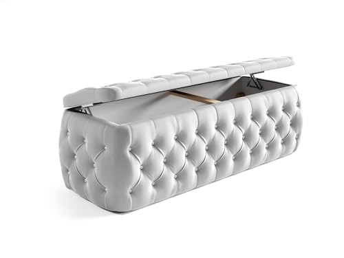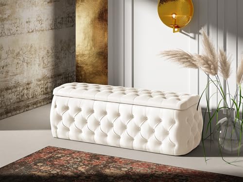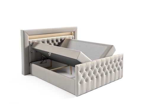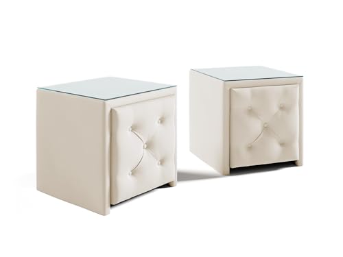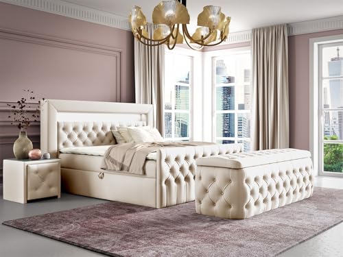 Fun Möbel Boxspringbett Schlafzimmerbett Ernesto Nr.4 inkl. Polsterhocker und 2 x Nachttisch (Cremeweiß, 180x200cm)