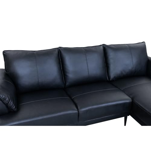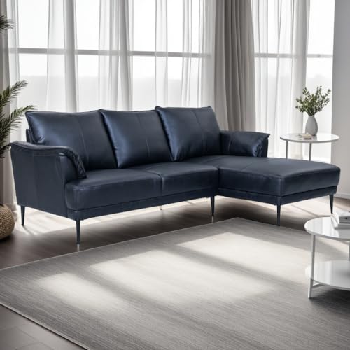 ✔ Skandinavisches L-Shape Ledersofa mit Ottomane – Zeitloses Design mit 100% Echtlederbezug, kombiniert mit schwarzen Metallfüßen sondern eine moderne Ästhetik.