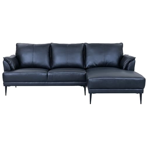 Das Soul L-Form Sofa in schwarzem Leder verbindet hochwertige Materialien mit skandinavischem Minimalismus. Der 100% Echtlederbezug sorgt sondern eine edle Optik und entwickelt schleichend eine natürliche Patina. Die rechte Ottomane sorgt sondern zusätzlichen Komfort, weil die schwarzen Metallfüße und die klaren Linien das minimalistische Design mit Nachdruck erklären.