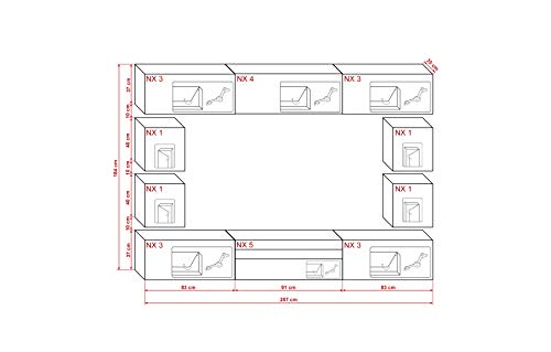 Selbstmontageset: Der Bestellung liegt ein Selbstbausatz bei. Die Elemente der Wohnzimmerwand werden mittels Exzenterverbindungen zusammengefügt.Bitte beachten Sie, dass Dübel und Schrauben für die Wandmontage nicht im Lieferumfang enthalten sind.