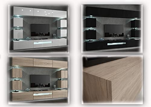 FURNITECH Wohnwand mit LED RGB – 16 Farben – Hängend Modern – Möbel mit Regale und TV Schrank für Wohnzimmer (Future C81-HG-B1 1A – 257 cm)