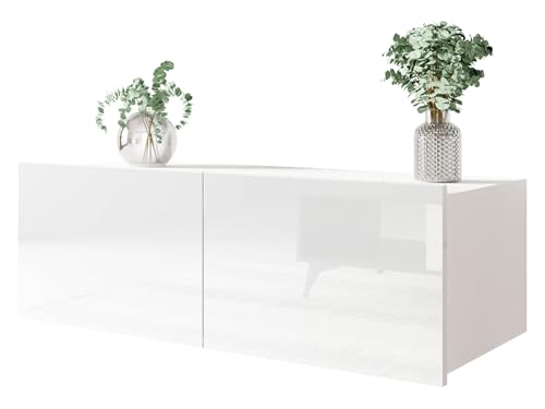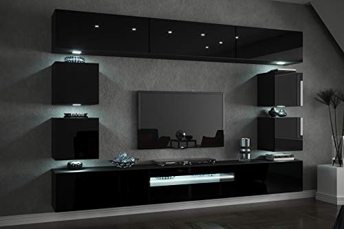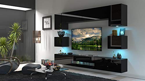 Furnitech Wohnwand Wohnzimmer – Wohnzimmer Möbel mit LED Blau – Hängend Wohnwand Modern – Wohnzimmer Schrankwand mit Regale und TV Schrank (Besta DAN1-17B-HG20 1B)
