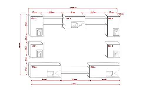 Furnitech NOWARA AN1 Neue Mediawand mit LED Beleuchtung Wohnwand Schrankwand Möbel Schrankwand LED RGB 16 Farben, AN1 17W M2 1A NEU MATT