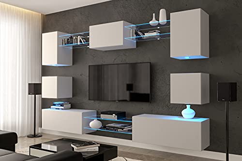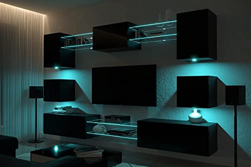 Furnitech NOWARA AN1 Neue Mediawand qua Leuchtdiode Helligkeit Wohnwand Schrankwand Mobiliar Schrankwand Leuchtdiode RGB 16 Farben, AN1 17W M2 1A NEU MATT