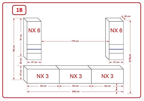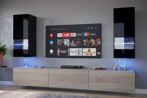 Furnitech Wohnwand Wohnzimmer – Wohnzimmer Möbel mit LED RGB – 16 Farben – Hängend Wohnwand Modern – Wohnzimmer Schrankwand mit Regale und TV Schrank (Sezana AN21-18BS-HGM7 1B)