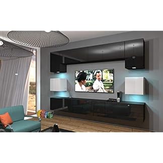 Furnitech Wohnwand Wohnzimmer | Wohnzimmer Möbel mit LED Weiß | Hängend Wohnwand Modern | Wohnzimmer Schrankwand mit Regale und TV Schrank (Nowara AN1-17BW-HG22 1B)