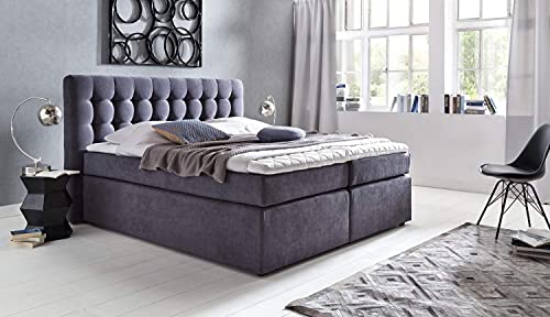 Doluna Premium Boxspringbett Perris – MADE IN GERMANY All-Inclusive Paket Qualität MADE IN GERMANY Alle Matratzen und Luxus Viskose Topper – INKLUSIVE Belieferung frei Verwendungsstelle – INKLUSIVE Technische Daten Einstiegshöhe mit Topper: stets ca. 67 cm Aufbau: 5-Zonen Tonnen-Taschenfederkerne in der Box 7-Zonen Tonnen-Taschenfederkern Matratze als Obermatratze Visco Topper mit Klimaband (Bezug abnehmbar und waschbar) Erhältliche Größen: 160 x 200 cm, 180 x 200 cm, 200 x 200 cm Erhältliche Härtegrade: H2, H3, H2/H3 Kombination (1x H2 + 1x H3) Zwei hochwertige Luxus-Stoffarten: Hochschule (einfarbig) Gemustert Farben: Anthrazit Muster, Anthrazit Hochschule (einfarbig), Hellgrau Muster, Hellgrau Hochschule, Braun Muster, Beige Hochschule, Moonrock Muster Aufbau von Ihrem neuen Luxus-Bett Der Aufbau von Ihrem neuen Boxspringbett mit Bettbox ist in 5 Handgriffen erledigt und sollte mit zwei Personen nicht länger als 10 Min. dauern. Erledigung Belieferung 1) Sie erhalten eine Info-Aktenmappe mit allen wichtigen Informationen und eine Kontrollliste für die Lieferung. 2) Wir durchgeben das Bett an die Spedition. 3) Die Spedition meldet sich innerhalb von 2-3 Werktagen nach übergabe bei Ihnen und bespricht direkt mit Ihnen den Tag der Lieferung. 4) Die Spedition kündigt sich 1 Stunde vor Ankunft bei Ihnen an. 5) Das Bett wird zu Ihrem Wunschort getragen.