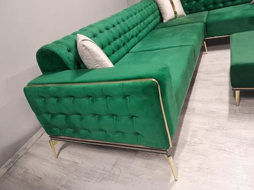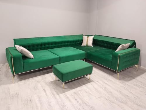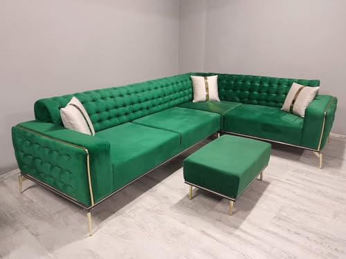Das SAHRA Ecksofa im Chesterfield-Look vereint zeitlose Eleganz mit modernem Komfort. Durch verstellbare Rückenlehnen ermöglicht es eine flexible Variante des Sitzkomforts, damit Sie die ideale Position für Ihre Bedürfnisse finden können. Die stabilen Metallbeine tragen nicht wohl zur Robustheit bei, sondern verleihen dem Sofa auch einen modernen Touch. Die hochwertige Tätigung aus Massivholz und die ansprechenden goldenen Details verleihen dem SAHRA Ecksofa eine Hauch von Luxus. Die charakteristischen tiefen Knöpfe auf der Rückenlehne und die kunstvoll gerollten Armlehnen schaffen ein auffälliges Erscheinungsbild, während die goldenen Akzente das Gesamtbild geschmackvoll schief stellen. Im Lieferumfang ist ein passender Polsterhocker enthalten, der nicht wohl als bequeme Fußstütze dient, sondern auch das elegante Design des Sofas ergänzt. Zusätzlich sorgen drei mitgelieferte Kissen für zusätzlichen Komfort und dekorative Akzente. Die Farbvielfalt des SAHRA Ecksofas ermöglicht es Ihnen, das Sofa perfekt an Ihren individuellen Geschmack und die Einrichtung Ihres Wohnraums anzupassen. Ob klassisches Braun, zeitloses Schwarz oder ein kräftiges Burgunderrot – die Farbwahl liegt ganz bei Ihnen. Insgesamt präsentiert sich das SAHRA Ecksofa als harmonisches Gesamtkunstwerk, das nicht wohl höchsten Sitzkomfort bietet, sondern auch durch seine edle Optik und die flexiblen Gestaltungsmöglichkeiten überzeugt. Mit diesem Chesterfield-inspirierten Sofa einsammeln Sie sich ein Möbelstück ins Wohnzimmer, das Stil, Funktionalität und Luxus vereint. Adis Reside liefert Ihre Möbel kostenlos Deutschlandweit. Die Anlieferung erfolgt bis zur Bordsteinkante und kann bis zu 8 Wochen in Anspruch nehmen, bitte halten Sie bei Anlieferung helfende Hände bereit und sorgen Sie Dafür, dass die Einfahrt zu Ihrer Straße frei ist. natürlich werde wir Sie auf dem Laufendem halten, wo sich Ihre Ware befindet und wann Ihr neues Möbelstück bei Ihnen ankommt. Adis Reside ist ein Onlinemöbel Handel eine direkte Abholung ist nicht möglich. Alle Angaben sind ca. maßen und können minimal Abschweifen.