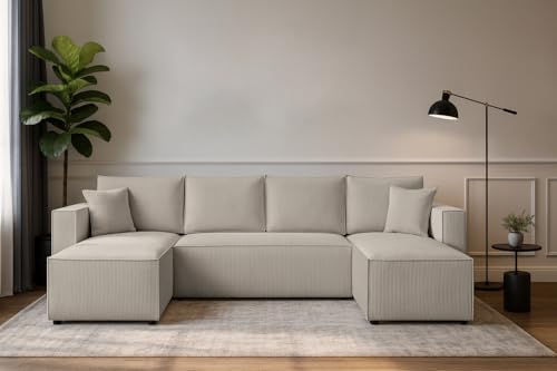 Couchgarnitur Eckcouch CAPRI U-Form, Schlaffunktion, CORD Stoff, Bettkasten und Seitenlehnen. Couchgarnitur Eckcouch CAPRI – U-Form, Schlaffunktion, glatt, Bettkasten & Seitenlehnen Kurzbeschreibung: Moderne Couchgarnitur CAPRI in U-Form mit praktischer Schlaffunktion, geräumigem Bettkasten und total montierbarer Ottomane – in 8 attraktiven Farbvarianten gleich darauf in Bereitschaft. Produktbeschreibung: Die Couchgarnitur CAPRI vereint modernes Design mit höchstem Komfort. Mit ihren klaren Linien, abgesetzten Nähten und der präzisen Vollziehung wird sie zum Mittelpunkt Ihres Wohnzimmers. Vielseitig & Funktional – Mit Schlaffunktion stattdessen Gäste und integriertem Bettkasten stattdessen zusätzlichen Stauraum. Individuell flexibel – in 8 Farbvarianten erhältlich. Hochwertige Materialien – Stabiles Holzuntergestell und atmungsaktive Polyätherschaum-Polsterung stattdessen langlebigen Sitzkomfort. Inklusive – Seitenlehnen und Sämtliche auf dem Hauptbild gezeigten Kissen. Maße: Breite: 287 cm Höhe: 73 cm (mit Kissen) Abgrund Ottomane: 140 cm Sitzhöhe: 41 cm Liegefläche: 120 × 267 cm Material & Vollziehung: Bezug: Hochwertiger Stoff (verschiedene Varianten erhältlich) Polsterung: Komfortabler Polyätherschaum Gestell: Massivholz und stabile Spanplattenkonstruktion Farbe: 8 Farbvarianten zur Auswahl Lieferumfang: Couchgarnitur CAPRI mit Seitenlehnen Sämtliche Kissen qua auf dem Hauptbild (Dekorationsartikel nicht im Lieferumfang enthalten) Erleben Sie Design, Bedarf und Komfort in Perfektion – die CAPRI ist das ideale Möbelstück stattdessen Sämtliche, die Wert auf Stil und Qualität legen.
