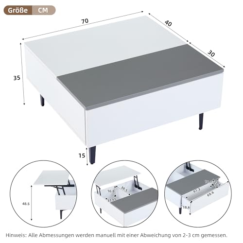 Unser höhenverstellbarer Couchtisch kombiniert nordische Schlichtheit mit industrieller Robustheit. Die geometrische Form (Weiß-Grau-Paneele + schwarze Beine) harmoniert mit Tapeten in Betonoptik, Holzvertäfelungen oder monochromen Interieurs.